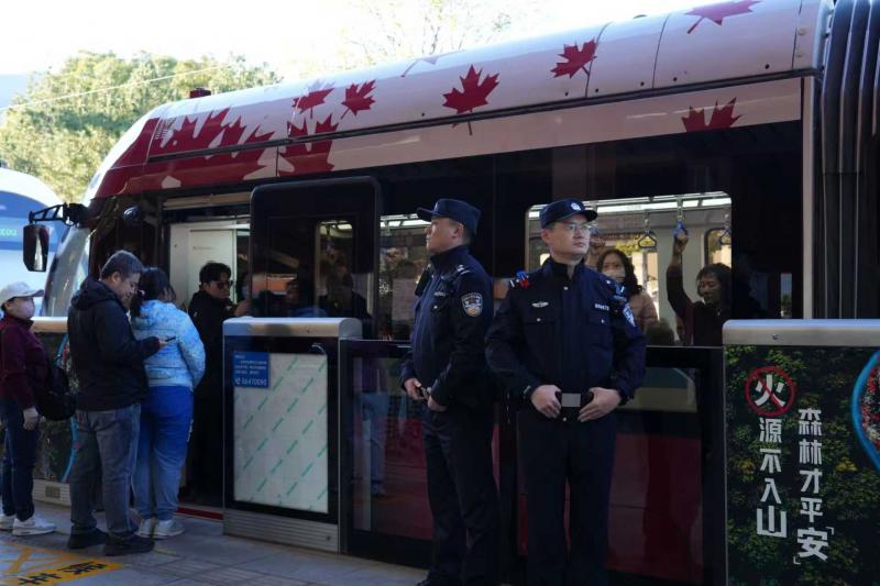 10月25日至26日的周末时段,北京奥林匹克森林公园、北宫国家森林公园、香山公园、坡峰岭等9处彩叶观赏期重点公园景区迎来了客流高峰。为应对公共交通领域大客流,确保游客出行顺畅与游览安全,北京公交警方显性用警,与市交通委、市交通执法总队以及公交地铁运营企业等多方协同、精细管理,围绕轨道交通、公交接驳、治安秩序及便民服务推出一系列保障措施。